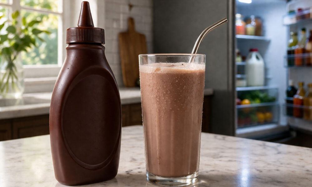 You just made chocolate milk and the bottle is sitting on the counter. Does it go back in the fridge or can it live in the...
