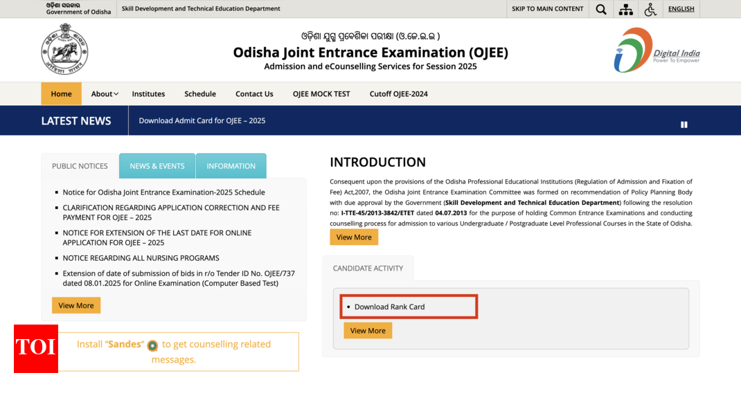 2. On the homepage, look for the link that says “OJEE Results 2025” or “Download OJEE Rank Card 2025.”